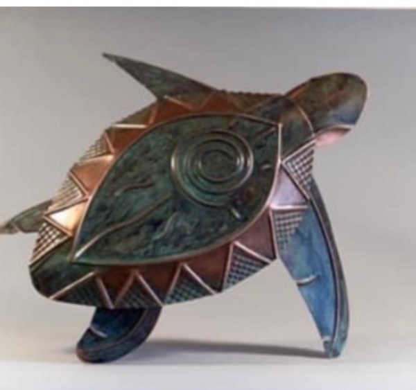 This copper Sea Turtle is a perfect addition to any home or garden. The turtle is beautifully textured and has a rich patina finish and is sprayed with a durable clear coat for outdoor decor.